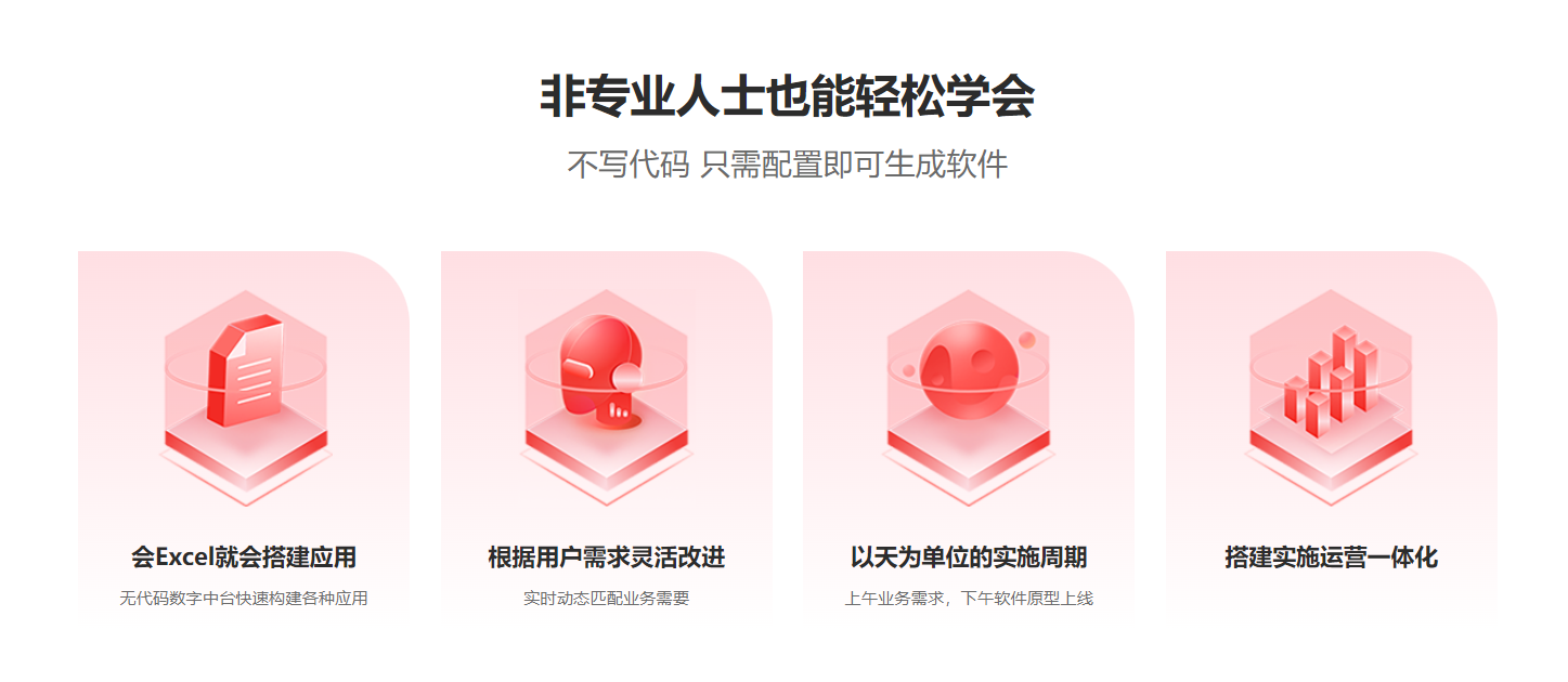 Excel中的数据只能用于特定场景的记录或报表,在线表格的功能也相对固化,均无法快速转化为支撑业务流程的应用工具,而业务人员想要搭建简单的业务系统,又面临“不懂编程”的门槛。魔方网表作为可配置数字化平台,以“无代码+Excel全兼容”的特性,让数据快速转化为可复用的业务应用。