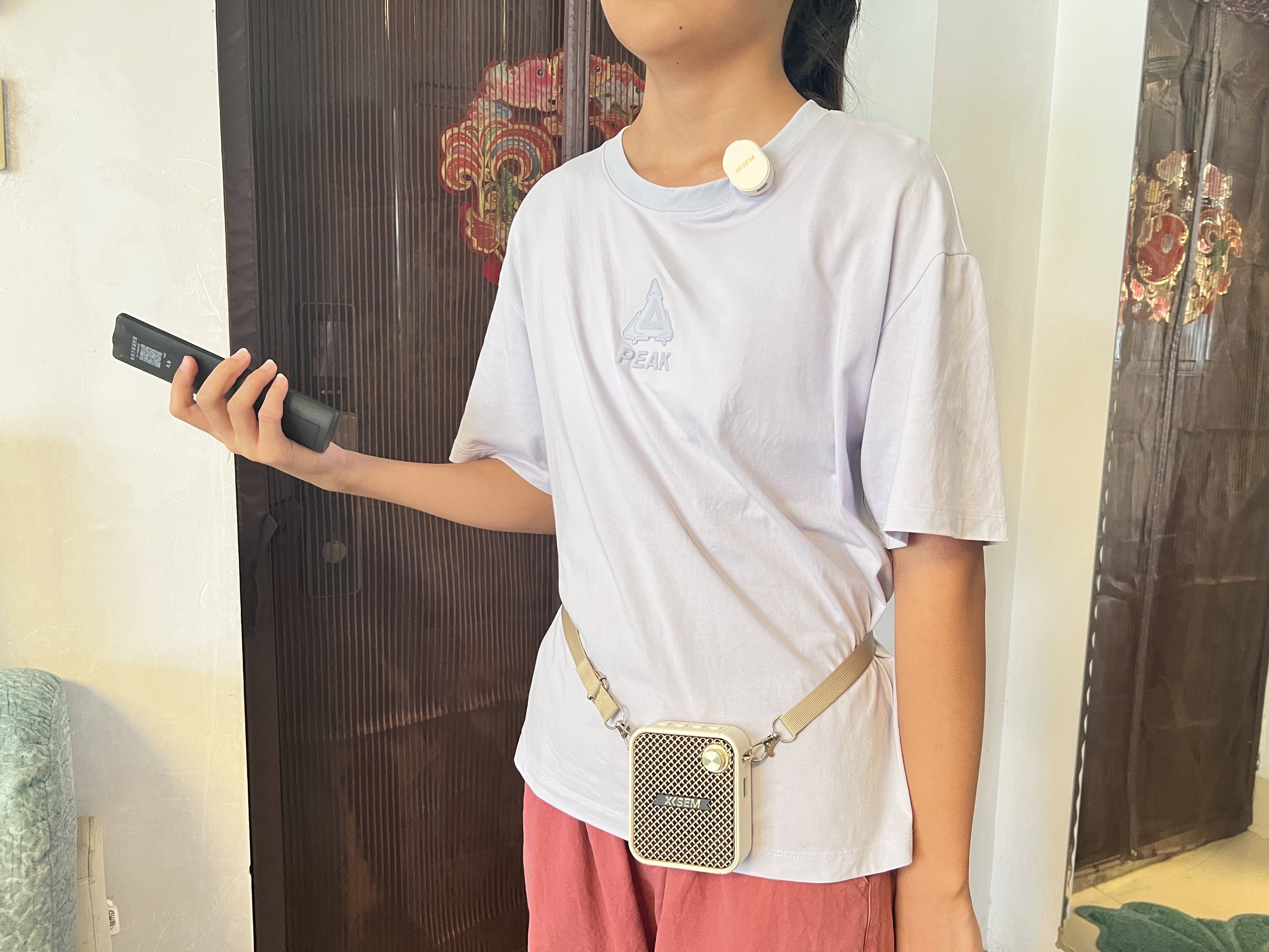 扩音器的佩戴方式上:可以夹在腰带上,当然,也可搭配附赠的挂绳挂在脖子上、挂在腰上,甚至直接放在桌面上(可做为蓝牙小音箱使用)也是可以滴。连接手机或平板电脑秒变蓝牙小音箱,听歌、追剧声音清晰,妥妥的精致播放器一枚。使用方式非常方便、舒适、灵活,可以全场景自由使用。