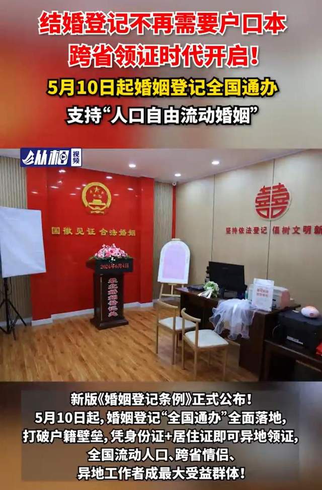 宝子们,国家这次真的给年轻人办事开绿灯了!从今年5月10号起,咱们领结婚证再也不用千里迢迢回老家了!以前那些在北上广深打拼的情侣,为了领个证得请假飞回老家,光机票就得两三千,还得忍受七大姑八大姨的"催生三连问",现在可算解放了!