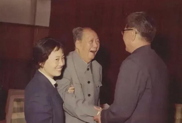 在这张珍贵的合影中,毛主席正和乔冠华握手,两人脸上都洋溢着难以掩饰的喜悦之情。而站在一旁的张玉凤,扶着毛主席,侧脸微笑,优雅而端庄。这一刻,毛主席笑得像朵花,那份纯真与快乐,仿佛让人忘记了他是一位肩负国家重任的领袖,而只是一个沉浸在喜悦中的老人。