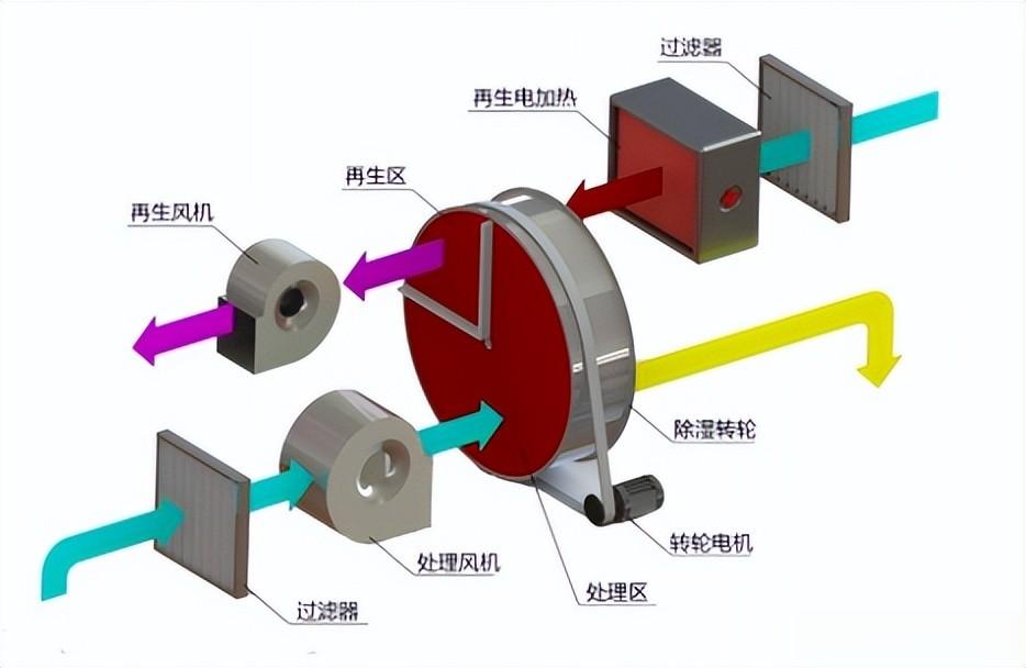 转轮除湿:通过转轮不停地转动,达到持续稳定的除湿状态