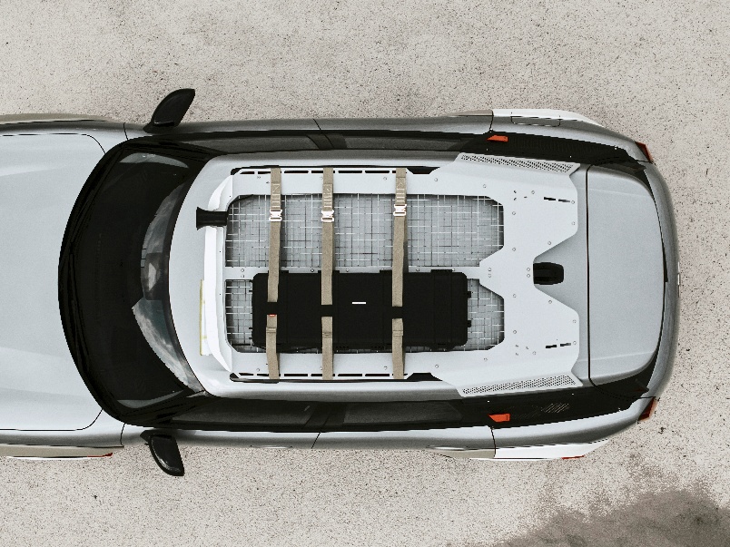 该车专属的宽体轮拱与更高的离地间隙,直观展现出 MINI COUNTRYMAN 深植骨子里的越野基因。侧裙上立体镶嵌的 “VAGABUND”标识,则低调却坚定地标识着它的独特身份。20 英寸封闭式 3D 打印轮毂盖,在强化力量感与肌肉感的同时,巧妙呼应了车尾音箱的设计语言。而车顶由激光切割铝板与不锈钢网格共同构成的车顶行李架,在视觉上借鉴了音箱网罩的设计特点,它不再只是功能附件,而是整车设计表达不可或缺的一部分。