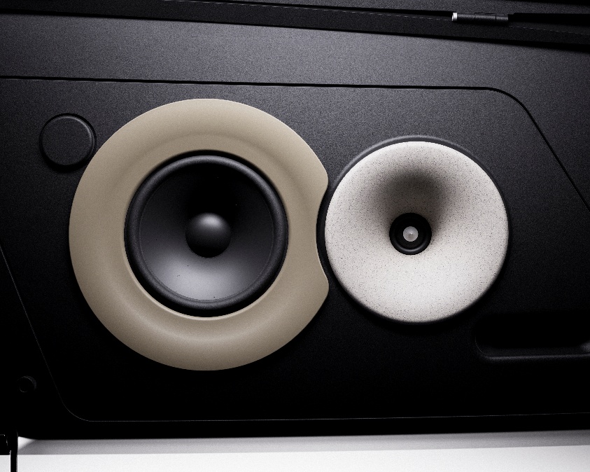 Vagabund设计师移除了后侧车窗,将专业级户外定制音响系统直接嵌入车身。这套系统的核心是一个特制的音箱,其箱体采用了顶级音响青睐的“铸造聚合物花岗岩”材质。这种高密度矿物复合材料赋予了箱体极佳的“声学惰性”——无论声波如何轰炸,箱体稳如泰山,为精准、纯净的声音再现提供了理想的声学条件。不仅如此,这种致密无孔的材质通过定制浇铸工艺与车身实现了无缝嵌合,更赋予了音箱防潮耐候性,无惧户外极端环境考验。