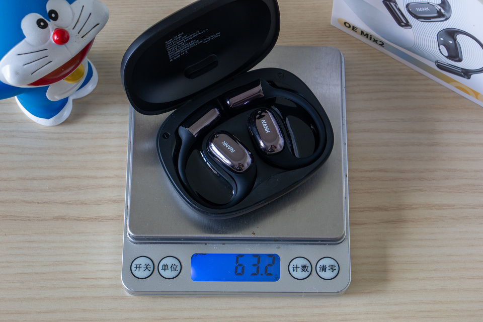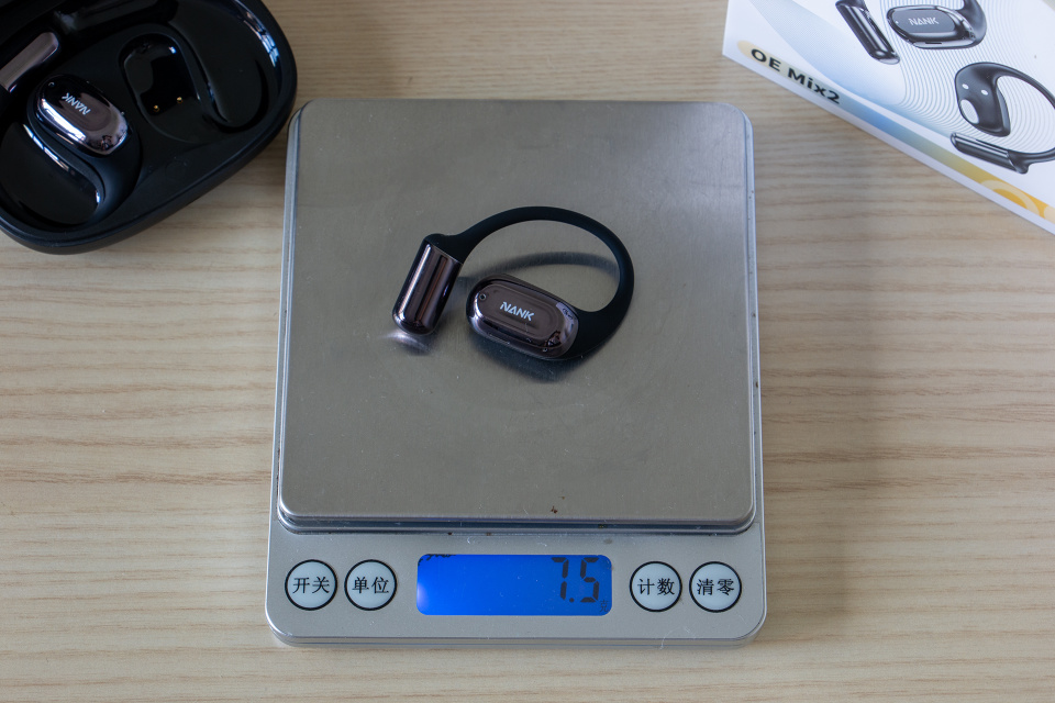 此次新推出南卡OE Mix2,单耳重量仅为7.5克重,配合其亲肤硅胶材质以及EAA悬停舒适佩戴技术,即便像笔者这样的眼镜一族,使用起来依然不会感到有不适。长时间佩戴没有任何的负担。连同充电仓整体重量仅为63.2克。
