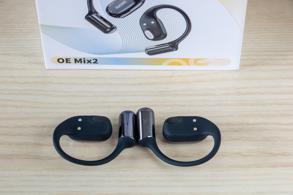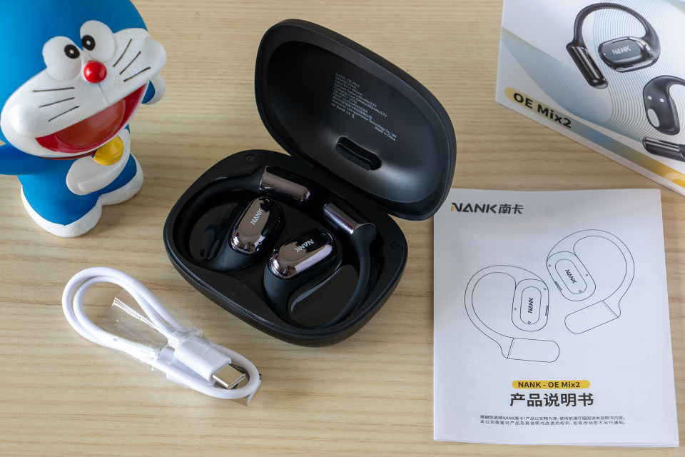 南卡OE Mix2设计为挂耳式,椭圆造型的充电仓小巧玲珑。