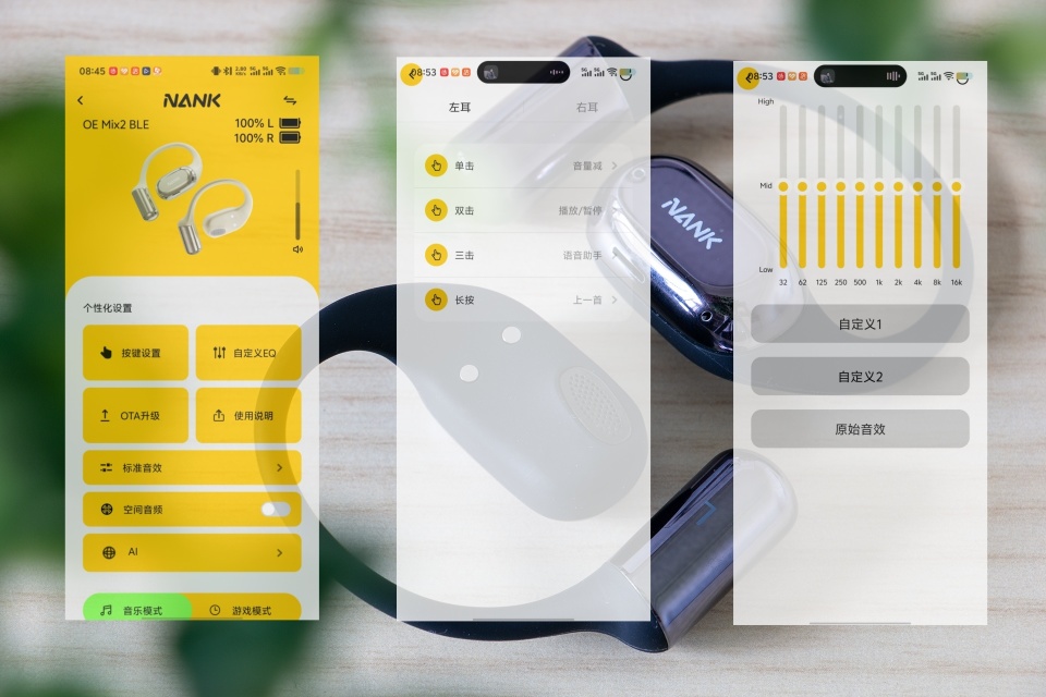 首先,通过南卡App可以自行设定耳机的按键功能,通过自行设定按键,可以完美契合用户的实用习惯,而不必重新适应。同时可以通过自定义EQ,针对自己的听感,设置符合自己喜好的频响。实测下来,效果非常明显。