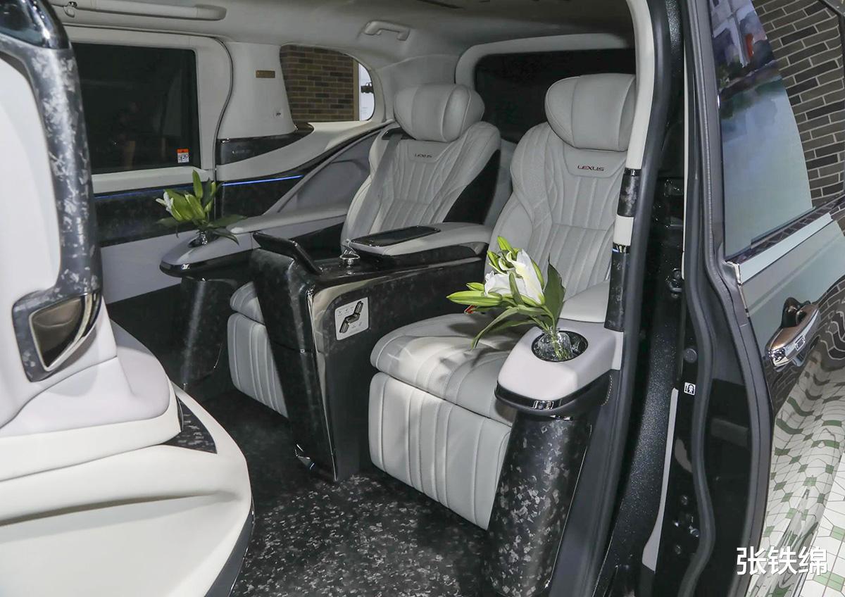 从实车尾部的LM500h标识来看,这辆特别版的雷克萨斯LM搭载的是2.4T油电混动系统,综合功率为270千瓦,传动系统匹配的是6AT变速箱。