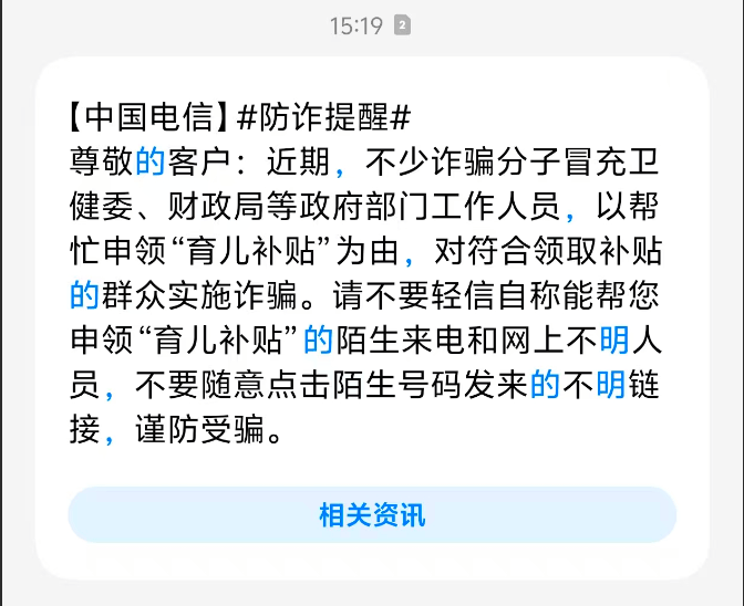 “您有一笔育儿补贴尚未领取!点击链接登记”——近期,全国多地涌现新型骗局,不法分子精准冒充卫健委、社保中心等政府部门,以“发放育儿补贴”“申领生育津贴”为诱饵,发送诈骗短信与伪造链接。许多家庭信以为真,在看似“正规”的页面上填写银行卡号、身份证号乃至支付保证金,最终导致财产损失。这不仅是对个人造成巨大的伤害,更是对公共信任的透支与社会信心的侵蚀。