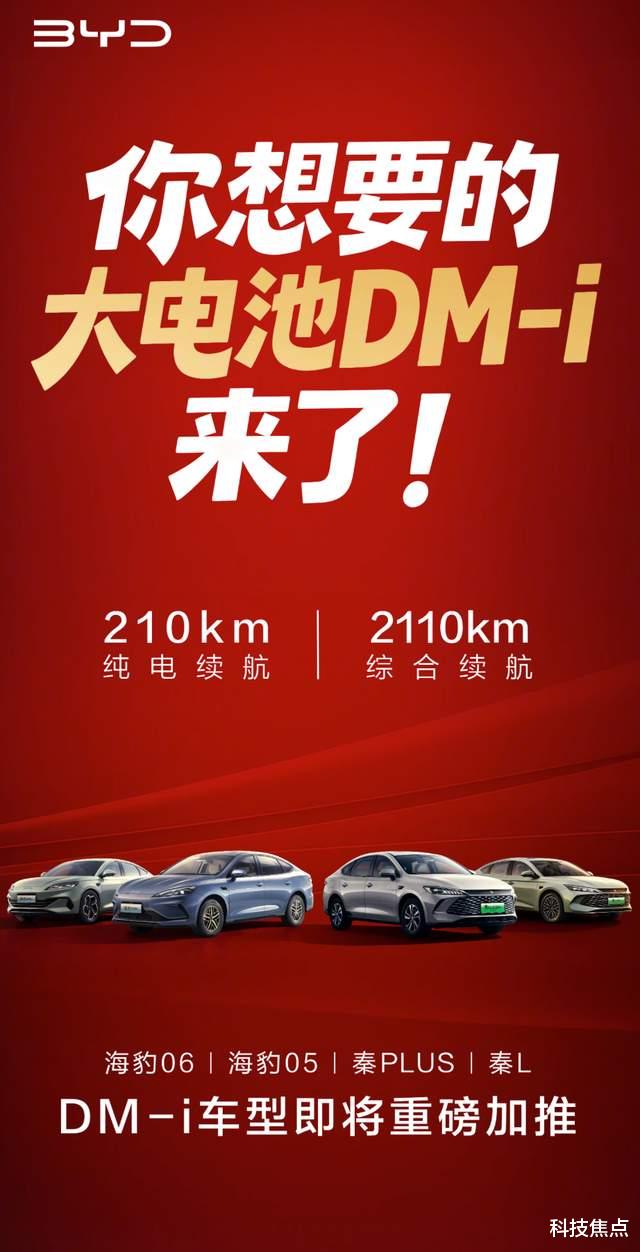1月7日,比亚迪宣布将发布4款全新插混车型长续航版,插混电力再加码,分别为秦PLUS DM-i、秦L DM-i、海豹05 DM-i及海豹06 DM-i,其CLTC纯电续航均突破210km,相比同级混动车型的纯电续航翻一倍,真正实现“一周一充”的纯电通勤体验,再加上20分钟就能从30%充到80%的快充,综合续航里程超2110km,彻底告别续航焦虑。