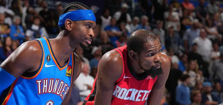 NBA常规赛正式拉开帷幕,联盟安排了一场强强对话,卫冕冠军雷霆主场迎战兵强马壮的火箭队,双方均是上赛季西部排名前二的队伍,加上休赛季火箭制造了轰动联盟的超巨杜兰特交易以及角色球员补强,阵容深度再上一台阶,球队实力一度成为夺冠热门;而雷霆则是在成功夺冠问鼎后,基本保留下了原有的稳定阵容!