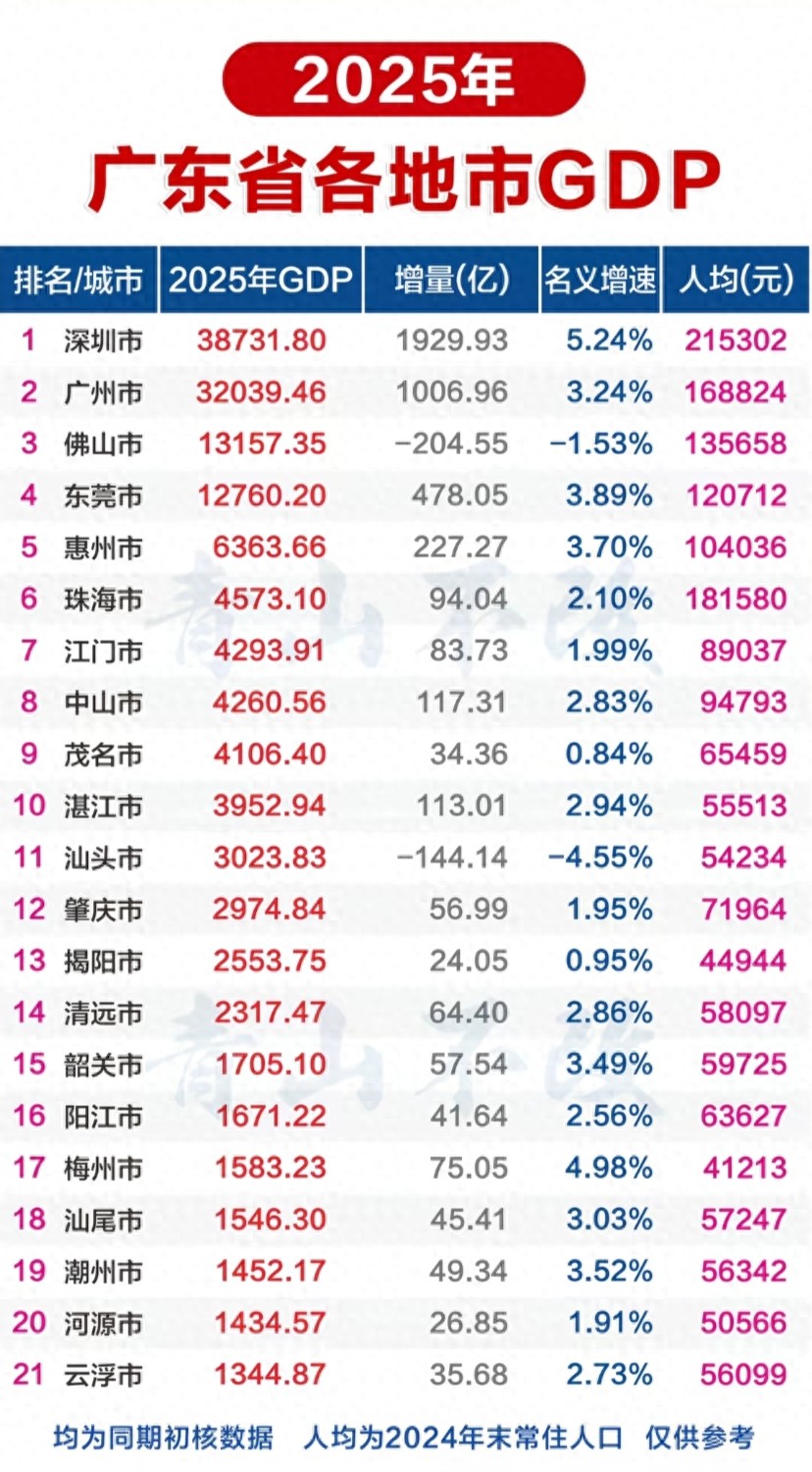 当珠江口的风吹过南粤大地,带来的不仅是暖湿的春意,更是一场深刻的经济地理变革。随着2025年各地市经济数据的陆续揭晓,2026年广东省的城市格局注定将迎来一轮令人瞩目的“大洗牌”。从珠三角核心区到粤东西北腹地,传统位次正在被打破,新的增长极加速形成。