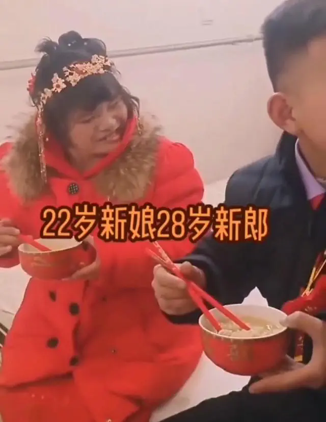 新郎家里条件一般,没办法满足那些要求高昂彩礼和房子的女孩。家里还有一个弟弟在上大学,经济压力山大。所以,能找到这样的媳妇,对他们来说已经很不错了。