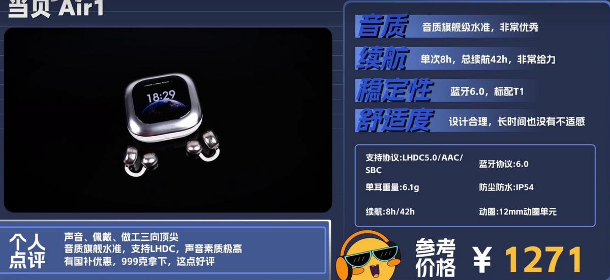 当贝Air1在耳夹式耳机里属于旗舰定位,加上国补后价格也更友好。全方位无短板,佩戴舒适度直接拉满,零压钛芯设计,敏感耳戴一整天也不夹耳、不闷堵,12mm动圈搭配LHDC5.0,旗舰级音质,声音解析力和层次感都很在线。