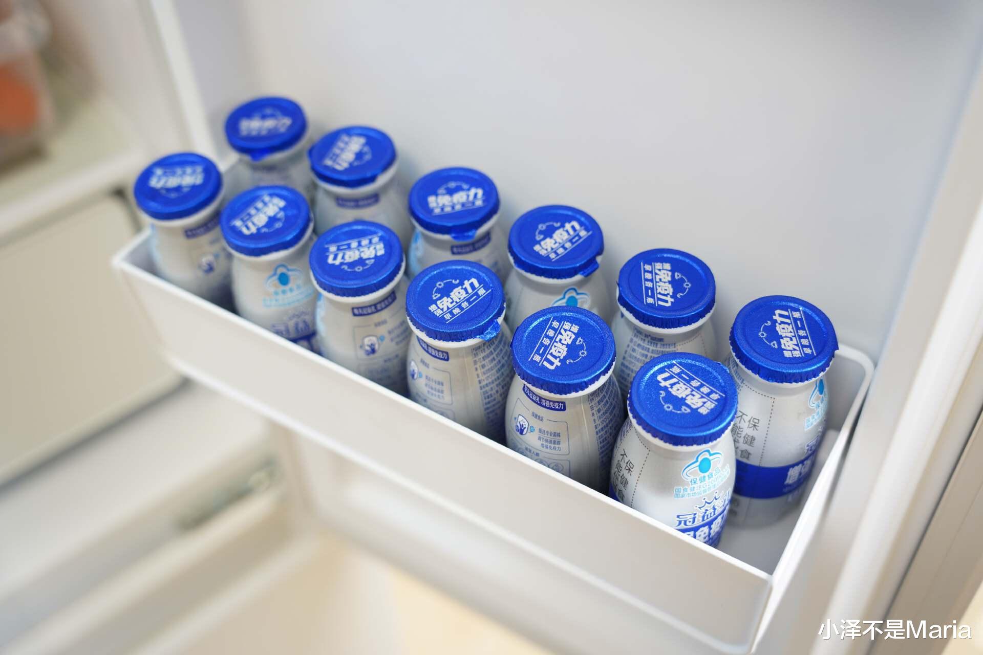 ▼门板两侧的置物架,高度配置合理,食材拿取非常顺手,容量也很够用,可以一次性放下14瓶酸奶,非常适合收纳随取随用的小件食材。