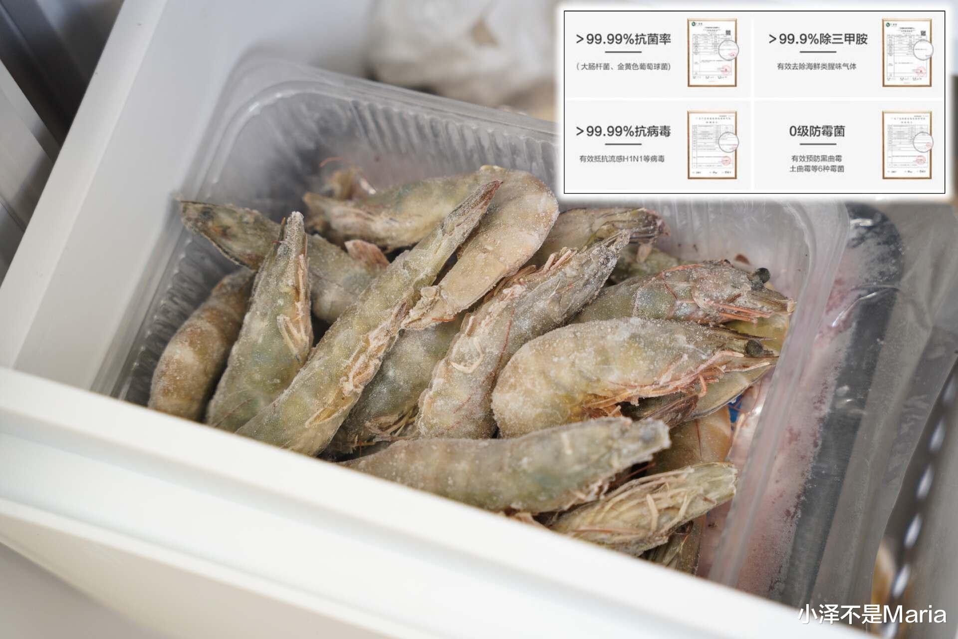 ▼冷冻室的抗菌功能重要吗?当然,尽管处于低温状态,但食材长期冷冻,依然会被细菌影响口感,最近正是吃海鲜的季节,我在冰箱里囤了不少鲜虾贝类,尽管已经超过两周,冷冻的大虾虾头没有一点发黑的迹象,看起来依然十分新鲜。