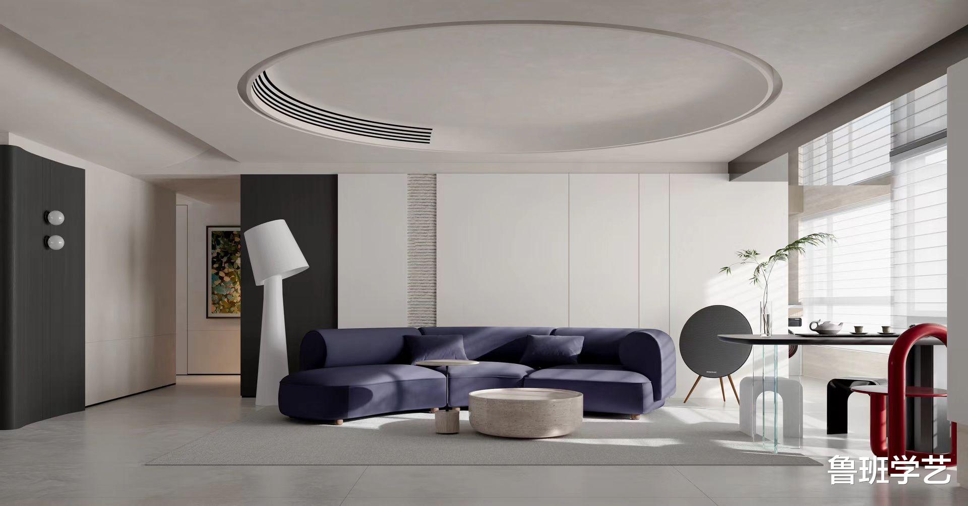 为此,设计师大胆地采用了“地砖通铺,全屋不吊顶”的策略。这一看似简约的手法,实则蕴含着对空间感的深刻理解。地砖从玄关一路延伸至客厅、餐厅、过道,甚至厨房,这种材质和色彩上的统一,极大地模糊了不同功能区之间的界限,在视觉上营造出一种流动、连贯的整体感,让123平米的空间显得愈发开阔。放弃复杂的吊顶,则保留了房屋原始的层高,避免了压抑感。裸露的屋顶仅通过简洁的轨道射灯和筒灯来提供分区照明和重点照明,既满足了光线需求,又以一种极简的工业美学,赋予空间一种率性、洒脱的气质。