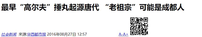 华西都市报:最早“高尔夫”捶丸起源唐代“老祖宗”可能是成都人 2016-08-27