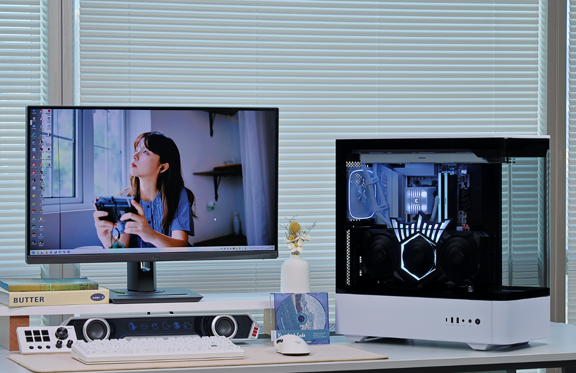 聊完市场现状聊现实,对于追求极致游戏游戏体验的DIY玩家而言,一套兼顾性能和颜值的高性能整机,才是真正解锁“爽玩”的密码。今天给大家分享的依旧是一套价格不便宜,但性能颜值都很顶的双曲面熊猫色海景房主机。