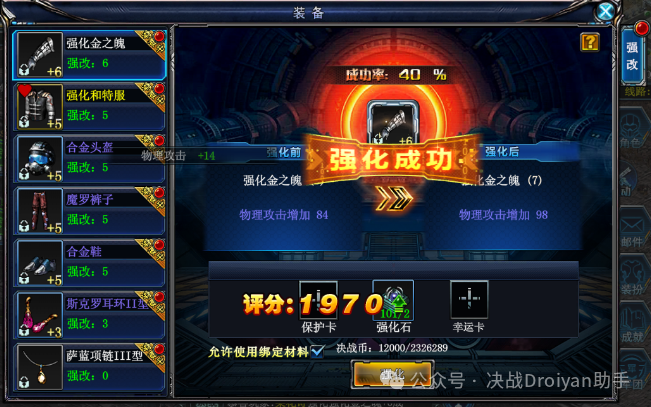 强化装备有门道:1-5 级裸冲就行,就算失败也就降几级,不心疼;但到 6 级往上,必须用保护券!不然装备搞坏了,之前的功夫全白费,血亏!