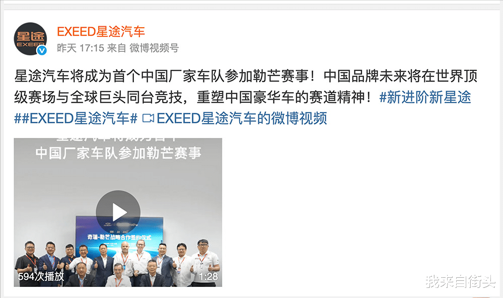 在星途官方社交媒体发布的预告片中,官方以“量产车技术研发的终极实验室”、“以赛道技术反哺量产车型”、“让世界看见中国制造的激情与实力”等表述,清晰展现出奇瑞集团进军WEC赛场的决心与野心。