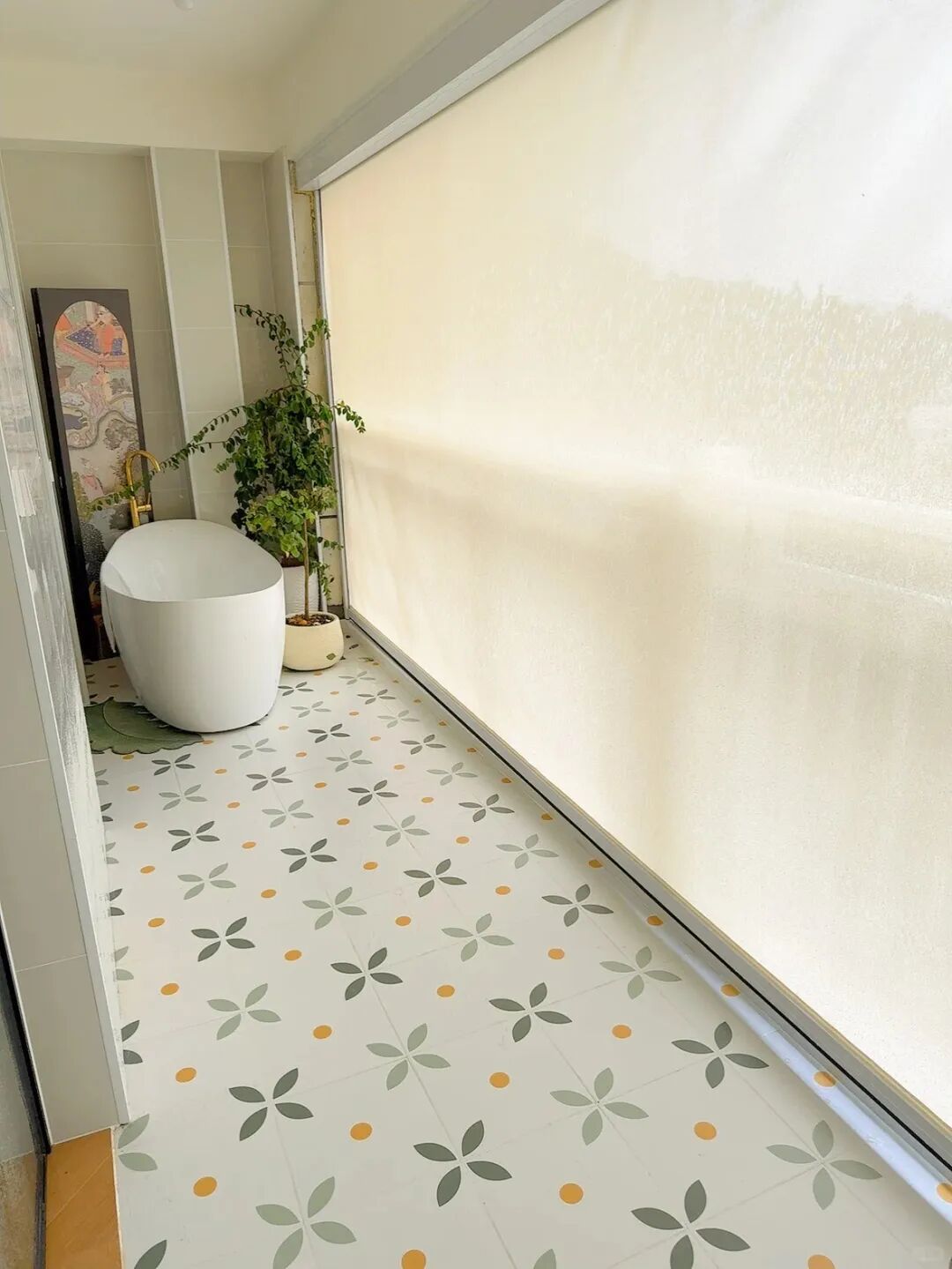 通风不闷:夏天拉下来,既防蚊又不挡风,阳台照样通透,比全封闭的舒服多了。