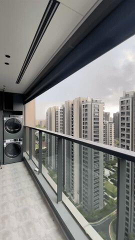 邻居说他家西边户暴晒,蚊虫又特别多,住江边有大风,而且洗烘机放在阳台,也担心长时间暴晒会缩短使用寿命,所以,种草了这种电动防风卷帘,用了3年,效果不错。