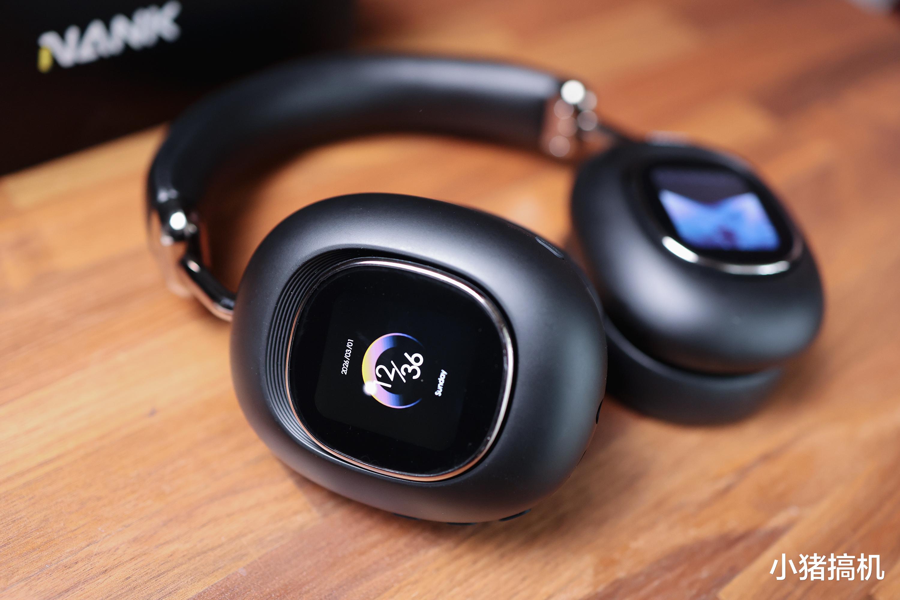 先说说最直观的外观,毕竟每天戴出门,颜值还是要有的。市面上大多头戴耳机不是纯黑就是纯白,看着特别单调,南卡SHOW直接打破常规,两边各有一块可拆卸的灵动屏,一下子就有了辨识度。机身摸起来很细腻,没有那种廉价的塑料感,转轴掰起来很顺滑,不会卡顿。