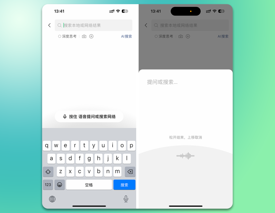 这个按钮使用起来也是很简单、方便的:当我们需要搜索问题时,可以摁住底部语音提问进行搜索,说完直接松手就可以搜索你的问题,上滑则是取消输入。这次修改可以提高用户使用语音进行搜索,相比之前的小按钮好用了。但目前这个功能仍处于灰度内测,没有内测到的可以再等等。
