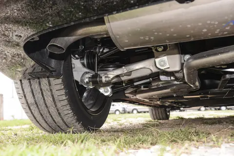 底盘方面,采用前双叉臂、后多连杆的独立悬挂组合,且部分摆臂采用了铝合金材质以减轻簧下质量。中高配车型还配备了连续可变阻尼减振器。在实际道路体验中,这套底盘展现了良好的滤震能力。经过破损路面或井盖时,悬挂能高效吸收冲击,传递到车内的颠簸感被处理得比较柔和,车身姿态稳定,没有多余晃动。通过减速带时,冲击感圆润,车内乘员舒适度有保障。在高速过弯时,悬挂提供了有力的侧向支撑,车身侧倾控制得当,给驾驶者充足的信心。