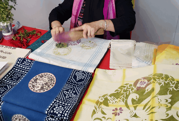 4. 印花:将染色后的锤草纤维编织成图案,用于布料上的印花。