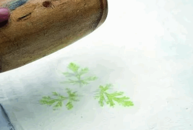 1. 采集:锤草印花的原料取自大自然,锤草、染料等都来自野生植物。
