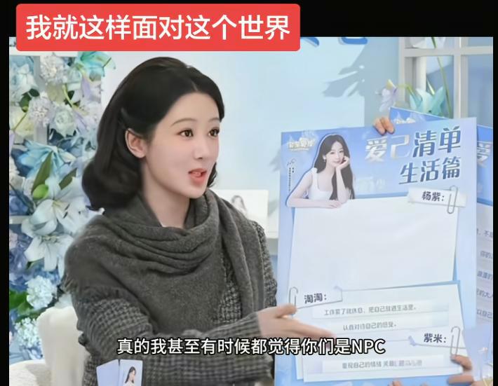 但认真解读的话,“戒色”并非字面意义的禁欲,而是一种高级自律——减少情感内耗,屏蔽外界纷扰,把精力收回来专注自身 。杨紫自己还延伸了一句哲学思考:“你的世界因你存在而存在,他人如同NPC。”