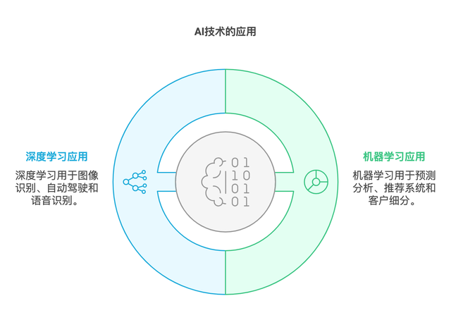 机器学习的应用:机器学习在实际应用中,广泛应用于如预测分析、推荐系统、客户细分、欺诈检测等场景。例如,通过监督学习训练的分类模型可以帮助电商平台识别用户是否为潜在的欺诈者;无监督学习的聚类算法可以帮助市场营销团队对客户进行细分,从而精准营销。深度学习的应用:深度学习则更多应用于需要高精度且数据复杂的场景,如图像识别、自动驾驶、语音识别、自然语言处理等。例如,深度学习在图像分类任务中的表现极为出色,能够通过卷积神经网络(CNN)自动识别图像中的目标物体;在语音识别中,深度学习也能有效处理复杂的语言模式和语境。结论:选择适合的AI技术总之,机器学习和深度学习各有千秋。机器学习适合处理传统的、有明确特征的数据任务,而深度学习则是面对复杂、海量数据时的一种强大工具。作为AI产品经理,了解这两者的核心差异,能够帮助你在面对不同的产品需求时,选择最合适的技术路线。无论是机器学习还是深度学习,最终的目标都是利用数据和算法提升产品的智能化水平,让产品更好地服务用户。