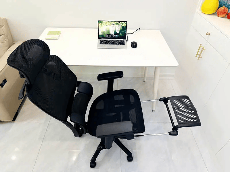 安全舒适度:网布透气性不错,长时间坐着不会有明显闷热感。魔毯腿托是加分项,展开后腿部承托面积大,午休或后仰放松时,身体压力能分散到下肢,整体放松感更明显。靠背和头枕对身体的包裹感不算强,但胜在自然、不压迫。