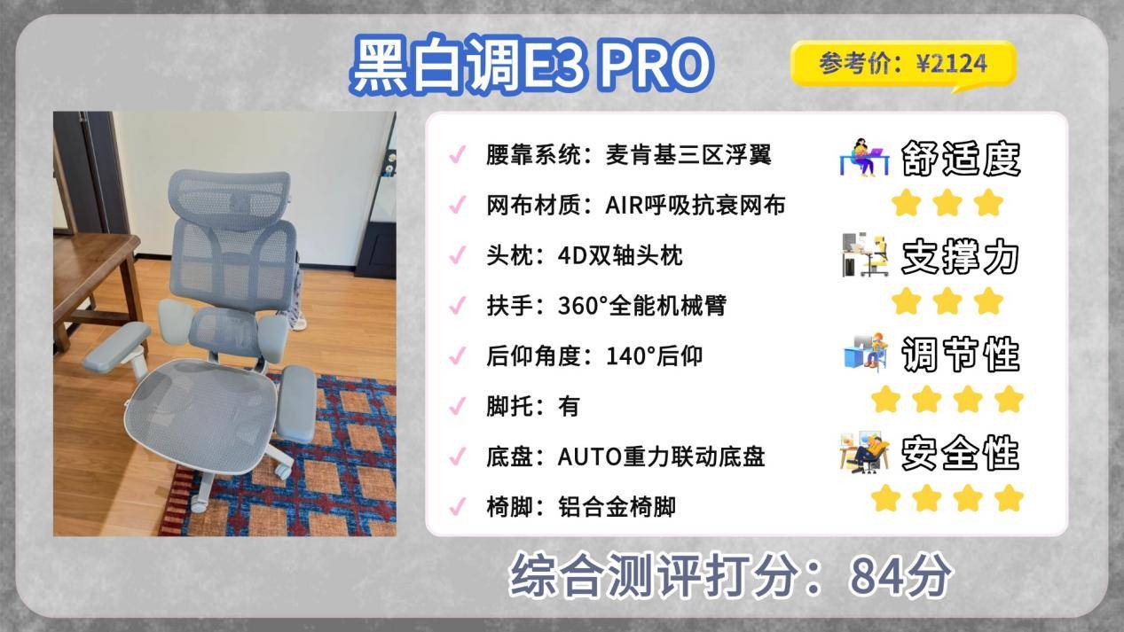 第七款、黑 白 调E 3 P R O人体工学椅
