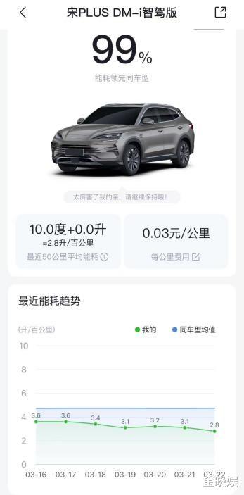 城区用电:一周一充,通勤成本每公里5分钱。对于日常通勤来说,比亚迪大电池DM-i车型给出了“用电自由”的解决方案。2026款秦PLUS DM-i等车型已将CLTC纯电续航提升至210km,直接杀入8万级市场。这意味着,以日均通勤30公里计算,一次充电足以覆盖一整周的出行需求。对于有有家充桩的用户,每度电费仅0.5元,年能耗成本不足4000元。而同级别燃油车油耗普遍在7.5L/100KM,在8.53元油价下,一年20000km油费接近1.3万元。仅此一项,插混车主一年就能省下近万元,堪称省钱的好搭档。