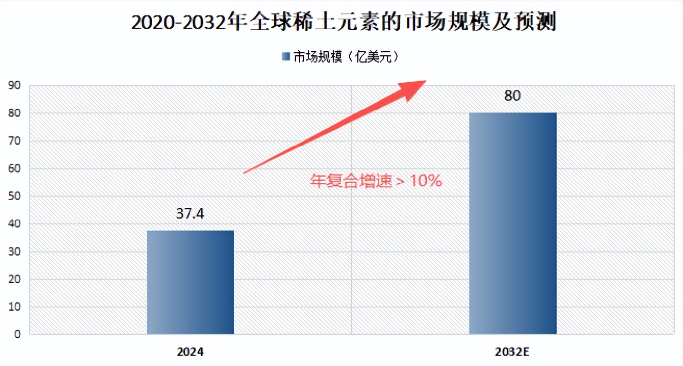 随着高端需求持续增长,预计到2032年,全球稀土元素的市场规模将超过80亿美元,2024-2032年的年复合增速超过10%!