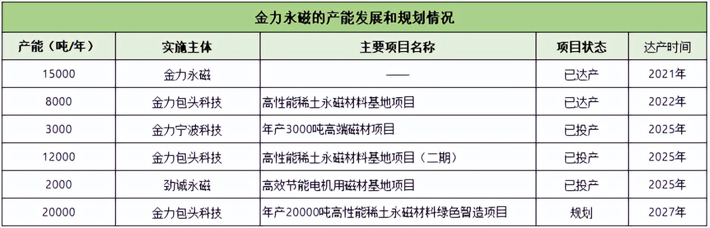 要知道,2024年的时候,金力永磁的磁材实际产能为3.2万吨,产能规模就已经超过正海磁材、中科三环和宁波韵升等企业,位居全球第一!