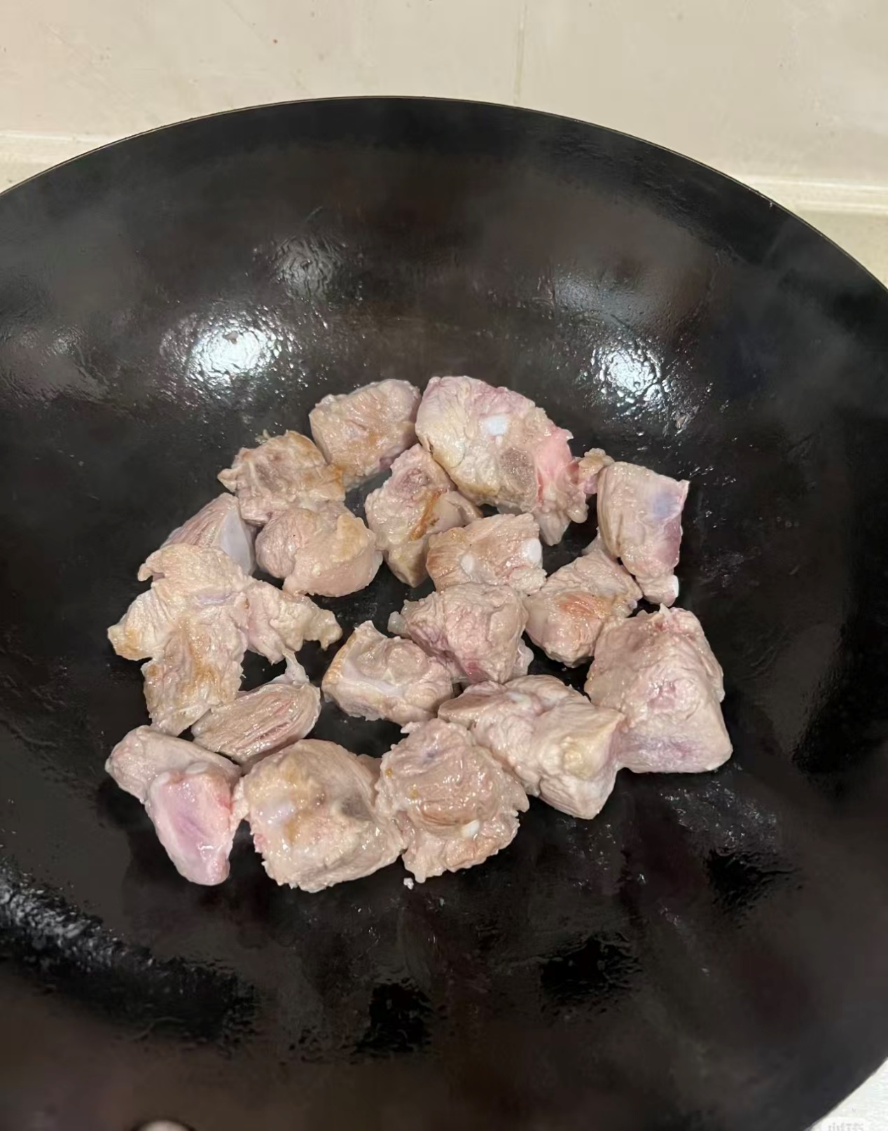 锅用厚底不粘锅,没就普通炒锅,别用薄底铝锅,那玩意儿除了能煎蛋,干啥都粘到怀疑人生。冷锅下1瓷勺油,小火把姜片、蒜粒丢进去,滋啦一声,香味像烟花炸开。蒜粒表面微微金黄,就把鸡腿块请进来,中火煎到鸡皮“嘭”地卷起,呈诱人琥珀色。这一步别偷懒,鸡皮煎不透,后期一焖就“泄洪”,整锅汤油腻腻,颜值直接打五折。