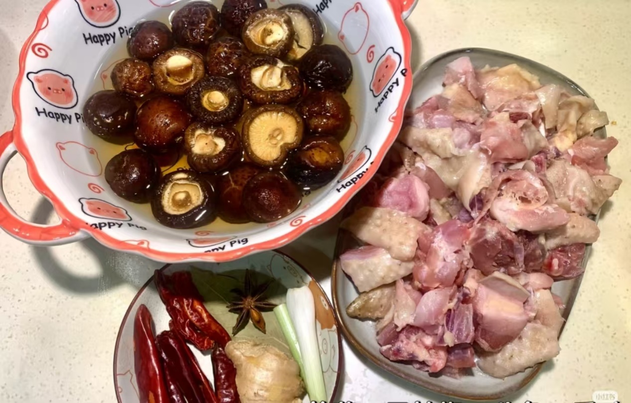 主角先亮相:干香菇15朵、大鸡腿3只、生姜1块、大蒜半头、小米辣2根(怕辣可省)。干香菇比鲜香菇香10倍,人家可是“浓缩的森林味精”,提前用温水泡20分钟,水别倒,等会儿就是天然高汤。鸡腿让摊主帮忙剁块,回来用清水冲掉骨渣,沥干后加1勺料酒、1勺生抽、半勺白胡椒、1小勺糖,抓匀腌10分钟,让鸡肉先“喝点小酒”放松筋骨,待会儿下锅才不紧张。