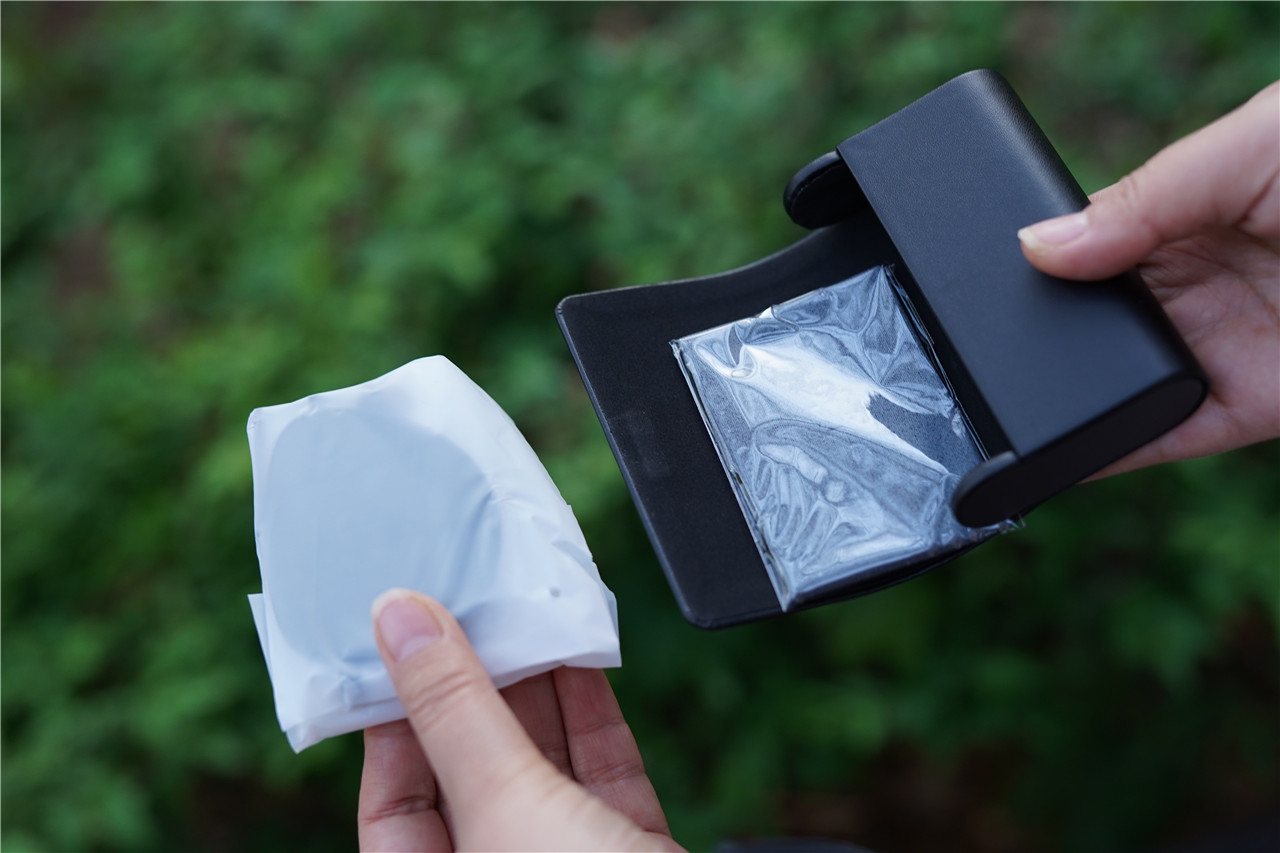 米家超薄折叠偏光太阳镜飞行员款的眼镜盒,对比常见的眼镜盒,从外观质感和尺寸大小方面就有明显的区别,我的第一印象就是,实在是太有格调、特别精致,可以轻松放到衣兜内,而且贴心的随眼镜盒还附赠一块眼镜布。