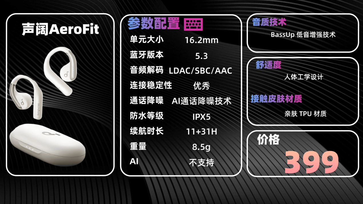 参考价格:399元 | 声音单元:16.2mm | 蓝牙版本:5.3| 综合性能评分:86