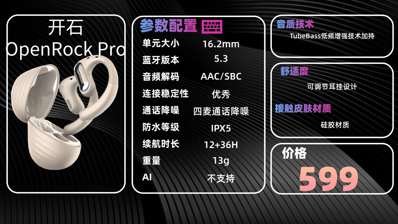 参考价格:699元 | 声音单元:17mm*12mm | 蓝牙版本:5.3| 综合性能评分:81