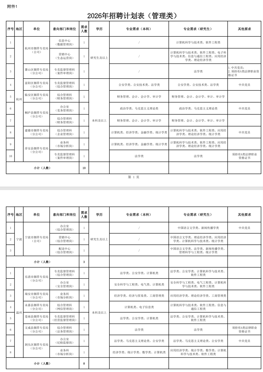 一起来看浙江省烟草专卖局(公司)2026年管理类岗位招聘要求和流程↓↓↓
