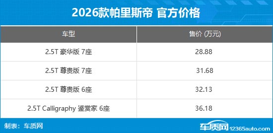 今日,我们从现代汽车官方获悉,旗下全新帕里斯帝正式上市,新车共推出4款车型,售价区间为28.88-36.18万元。作为换代车型,新车提供6座和7座两种座椅布局,动力换装了2.5T油电混合动力系统,进一步提升燃油经济性。