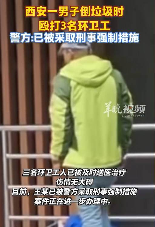 10月22日清晨,西安某垃圾压缩站,59岁的环卫工老陈和两位工友像往常一样处理垃圾。居民王某倒垃圾时嫌分类麻烦,冲老陈吼“快点弄,别耽误我上班”。老陈解释“按规定得分类”,王某瞬间炸了——他抄起扫帚砸向老陈,见老人护着工具不退让,竟连踢带踹把人搡倒在地。监控里,老陈蜷缩着捂胸口,王某还不罢休,对着老人腹部猛踩两脚,直到工友拉架才骂骂咧咧离开。