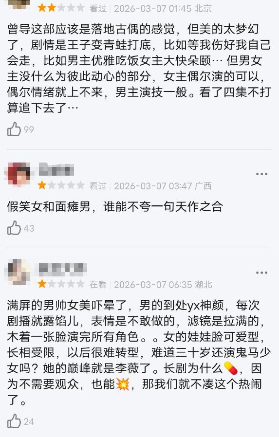 观众更是辣评:“假笑女和面瘫男,确实是天作之合。”