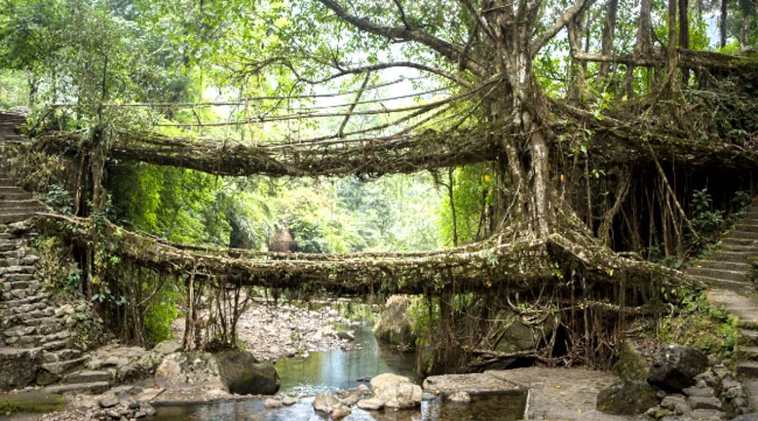 后来,卡西族因地制宜,开始利用印度榕的生长特性。他们在河岸的两边各种上一棵树,随后将树根缠绕在一座临时搭建的木桥上,木桥引导树根向对岸生长,待到树根抵达对岸,便将树根往下栽种到地里。