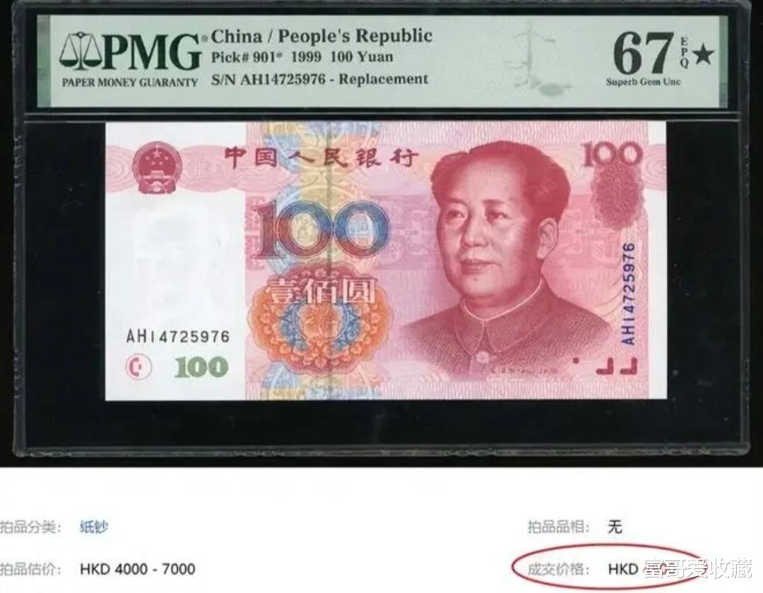 1999年的100元纸币,大家也都使用过。在2024年10月份的SBP香港拍卖会上,就有一张估价达到2500美元。这样换