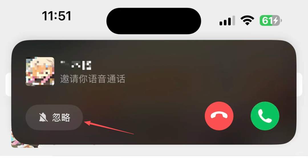 今后,当有微信视频或者语音来电时,如果不方便接听或者不想接听,但又不好直接挂断,就可以点击“忽略”按钮。